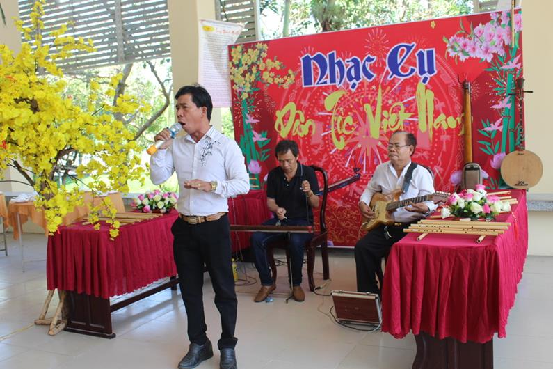 Anh Nguyễn Thanh Hiếu biểu diễn nhạc cải lương, phục vụ người dân trên địa bàn huyện Long Thành