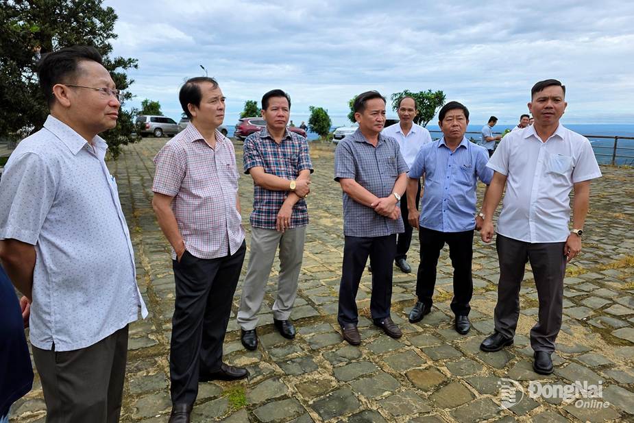 Đoàn khảo sát kiểm tra địa điểm đích đến tại đỉnh núi Bà Rá. Ảnh: Trương Hiện
