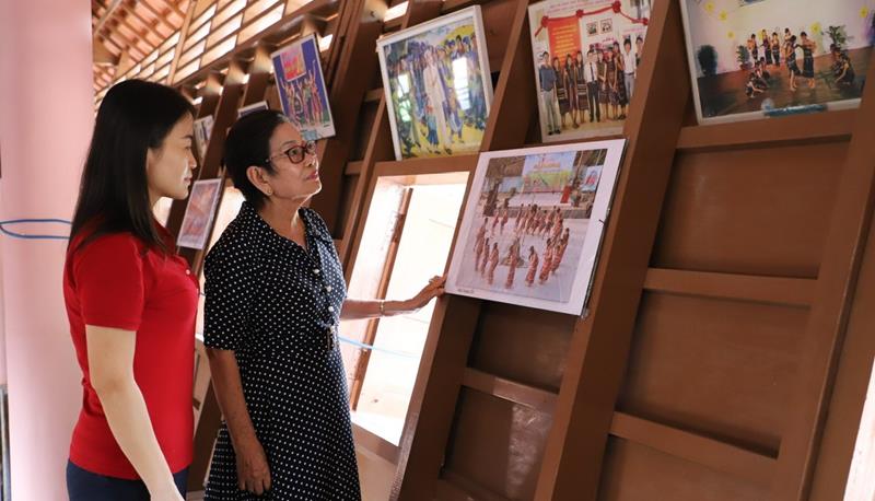 Du khách tham quan Nhà Văn hóa dân tộc Chơro, tìm hiểu về Lễ hội Sayangva tại xã Xuân Thiện, huyện Thống Nhất