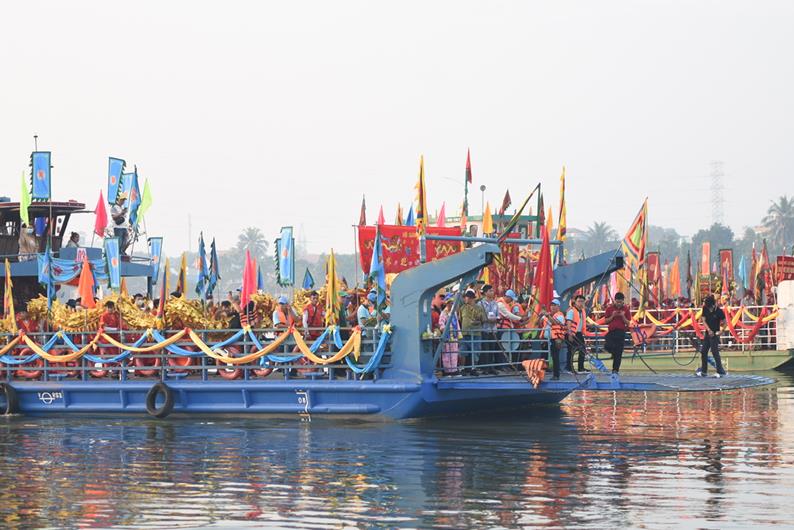 Nghi lễ nghinh thần trong Lễ hội chùa Ông, P.Hiệp Hòa, TP.Biên Hòa năm 2023 diễn ra trên dòng sông Đồng Nai