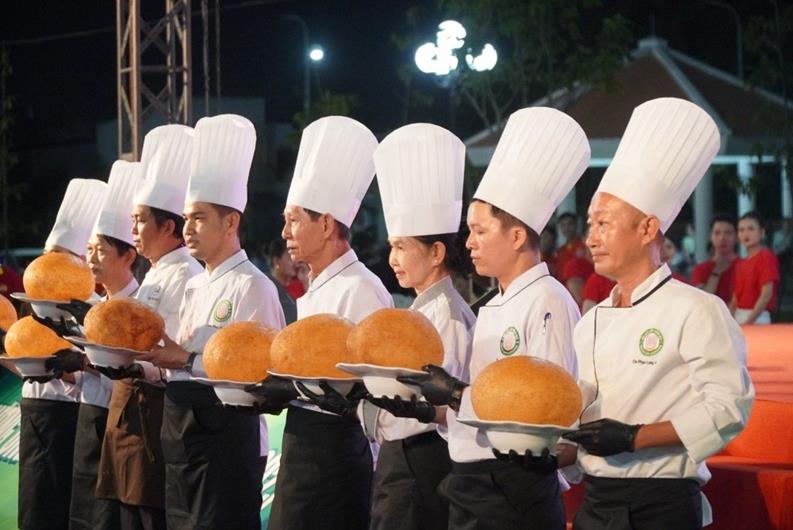 Các đầu bếp với sản phẩm món xôi chiên phồng