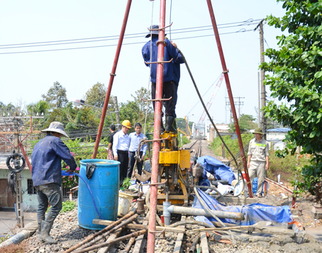 Khoan địa chất tại khu vực gần cầu Ghềnh.