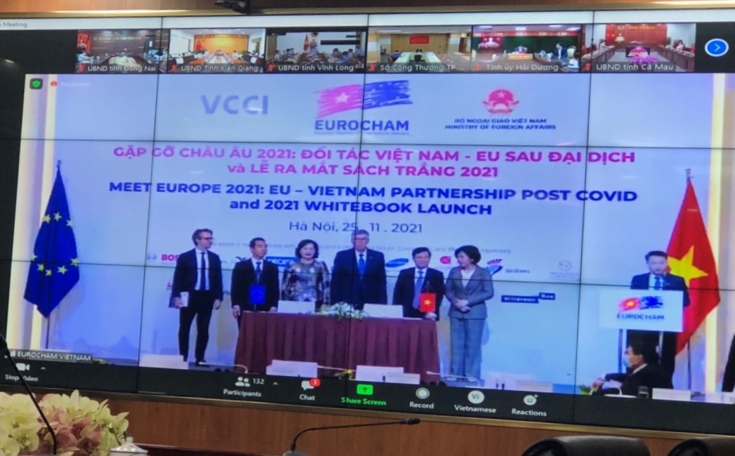 “ 2021欧洲会面”是企业和政府连接事件, 是驻越南欧洲企业协会和外交部合作。会议是双方有效连接,实际。各代表也讨论双方关心的问题通过2个专题:“政策对话”提高质量和投资环境、经营、照顾大家身体,贸易建议、服务、稳定发展和恢复经济 “越南-EU双方: COVID后,连接地方和企业”。