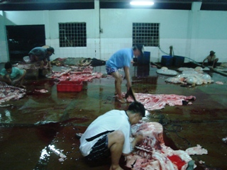 对于集中屠宰规划的情况,全省有231个屠宰基础有了屠宰许可证及兽医机关的管理,包含:水牛屠宰基础35个;猪子屠宰基础178个;家禽屠宰基础21个和兔子屠宰基础01个。但是,大部分这些屠宰基础的基础设备严重的落后,坐落民居的位置,不能保证食品卫生安全。按照规划,全省将规划36个集中屠宰基础。但是到目前建设集中屠宰的进度仍然缓慢(更建设一个集中屠宰基础在锦美县由LIFSAP项目协助)。据农业和农村发展厅副厅长翻明宝先生表示,目前正在展开其他08个屠宰市场,预计春节前投入使用,以限制屠宰未确保食品卫生安全的情况。