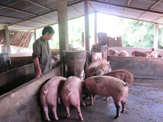 据永久县新安乡阮俊勇养猪者表示,最近他出卖了150头猪,价格为50500元/公斤赚400.000元/头。但是依他表示,此利润不一定将来价格将会如此,他还有一群猪准备出卖,以目前价格如此波动,如果不幸降50.000元一下/公斤,他会吃大亏。因此,养猪者对继续维持和发展猪群数量的决定非常的尴尬。他分享:“现在饲料价格增高可猪肉价格并不稳定。如果将来价格一直下降我们不得不减少猪群数量”。