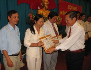 越南农民会中央副主席黎黄明乡个人、集体授予奖项。 |