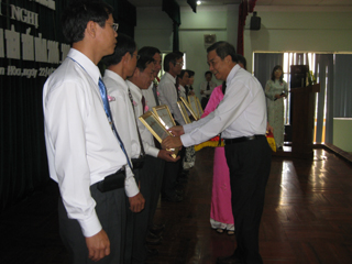 同奈省人委会主席Vo Van Mot向各典型集体及个人授予奖状. |