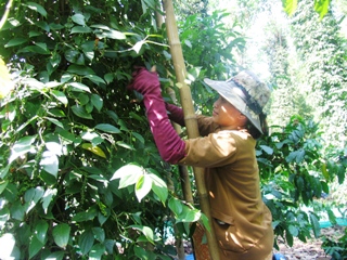 除了胡椒之外,劝农项目有关移植、改造咖啡树也被执行非常有效。之前,省得咖啡产量只达1,7吨/公顷,原因是咖啡园具有退化倾向。这要求咖啡更换新品种,才能提高产量及抗病性,省劝农中心把移植改造技术转交给农民。此技术就是使用旧的咖啡根,移植与TR4, TR5, TR6新品种的技术。以这种方法,15个月后咖啡已经结果,平均产量可达4-5吨/公顷。这方法的应用成本比旧的减少了一半。