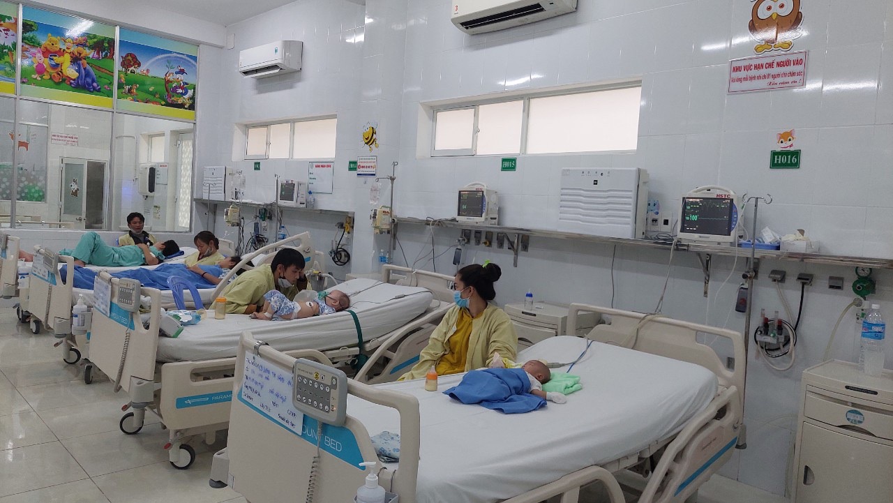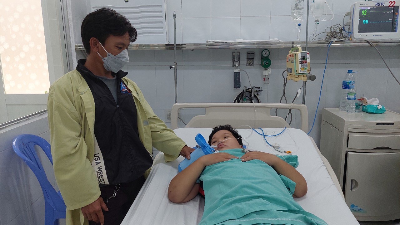 在同奈儿童医院照顾孩子的阮文结先生 44岁(住边和市-庄长坊)说出,他孩子今年12岁,53公斤。前几日发高烧呕吐,去医院抢救。在热带医院经过2天治疗有变重情况因此转至预防中毒积极抢救科互助转液和 氧气。