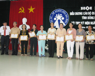 卫生厅副厅长黄高海给优秀家庭人口与计划生育工作的干部授予奖状