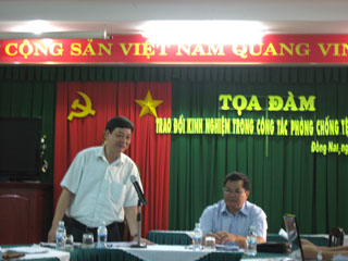 社会弊端防止局副局长阮文善在社会暨荣军劳动厅举办的座谈上对志愿社会队的活动工作发表意见