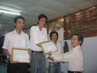 代表组织委员会给黎黄南运动员颁发奖金。 |