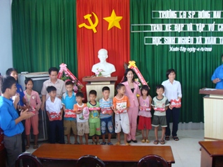 同奈示范高等院校的团校组织对各乡贫困学生赠予书本