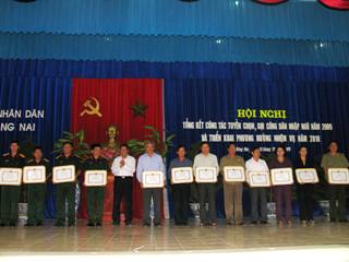 与挑选工作进行的同时,通报公民以及实现军队后方政策的工作一直被各级、部门加以关心实行。在交军工作后,各地方举派其党政军干部团前往接兵的各单位进行访问,对新战士给予慰问。预计,同奈省2010年征兵计划的指标为2600个兵士,比2009年增4%,被分为两次进行征兵。