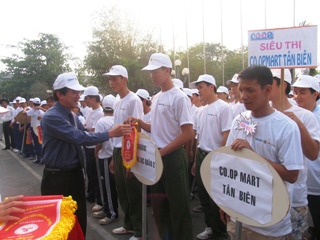 同奈省文化体育旅游厅厅长阮成智向各队授予纪念旗。 |
