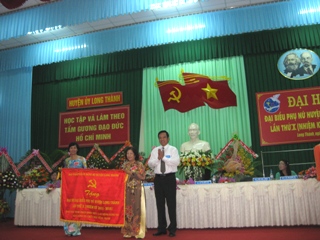 隆城县县委书记阮文得在大会上对该县妇女联合会赠予贺幛