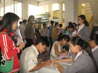 据组委会透露,虽是第21届职业交易会于年底12月份召开,可是仍然吸引较多企业、单位登记招聘劳工。24家企业登记招聘,劳工需求则是2300余人,主要仍是普通劳工1800余人,占77.9%。职业促进中心主任毛国忠告知,今年10次交易会,国内外企业在职业交易会以直接聘用及网上聘用两种方式地进行招聘劳工的是216次。这些企业、单位聘用劳工的需求为21,161人,其中普通劳工是17,300人(占81.7%)。逾20,000人次前来职业交易会寻找就业机会,可是上述企业、单位聘请到的劳工数量竟不多,仅有逾3200个卷宗。原因何在,年头三个季度,各企业因承受经济危机的影响而进行裁员,可是至4季度,经济已经呈现恢复态势,各企业、单位获得许多订货单,因而需补充劳工、扩展生产规模。近期连续4次职业交易会,登记招聘劳工的企业数量明显加增。许多企业登记招聘大量普通劳工,以及很多吸引的奖励、工资待遇,比如:同奈平仙公司,POUCHEN公司,Ta额可望Vina 公司,Sanyo Di Solution公司等等。