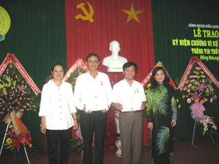 对各基层工会的领导同志授予“为工会事业”纪念章