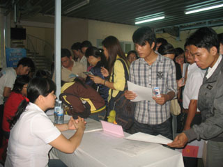 劳动者在每月10日定期召开的职业交易会寻找就业机会