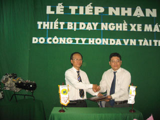 摩托车修理技能培训中心与本田公司在设备交接签订仪式中