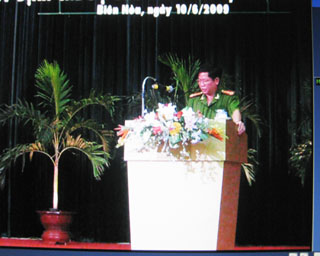 同奈省公安司副司长武文创在展开政府有关消防保险之议定的会议上发表意见