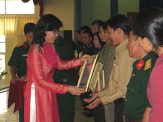 省人委会副主席黄氏娥对各集体及个人授予奖状