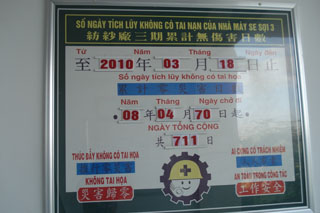 Formosa公司纺纱厂的安全生产通报栏