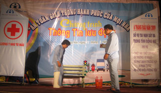 参加艺术晚会,流动艺术表演队的各成员以多种形式来宣传交通安全的必要知识,如:口头宣传,鼓动文艺表演,直观图片。据此,对老百姓进行宣传有关如何交通安全、执行交通法并体现出文化的交通安全规定。此外,组委会还对观众组织交通安全知识问答交流会。