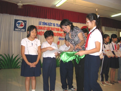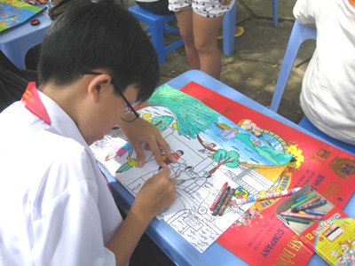 获得A级奖后的(隆庆)六年级第三班团氏庆玲告诉说,她很爱动物,尤其是野生动物,通过自己的画,庆玲要呼吁大家一同保护这些动物,因它们快被绝种。阮文节画家肯定说,虽笔划不很正确,配色不是很恰当,但竞赛是有益的游戏场,帮助儿童们更加明白什么是“友好环境”,从那让每个儿童本身知道应该要怎样做来保持友好环境。