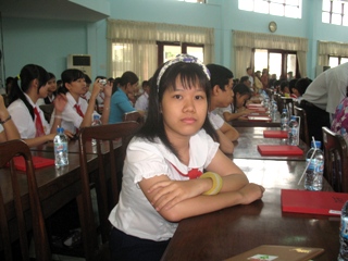 过去12年来,金燕在学习中一直取得优秀的成绩;过去的学年,金燕在省级英文优资生比赛中还“拿”了第三奖。然而,当提及到自己的学业成绩,金燕竟怯羞地表示,其成绩与学校中其他同学的成绩相比只是不值一提。金燕对所有门科都有很好的成绩,但最优秀的是英文科,这是因为她“喜欢探索新的文化”,金燕称。以自己对外语的优势,加上希望将来成为一名成功女商人的梦想,因而,今年的高考,金燕已决定报考胡志明市外贸大学。
