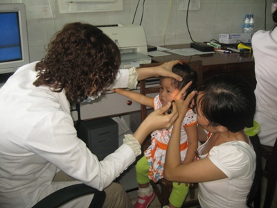 5月23日上午,在同奈儿童医院为孩子们进行眼睛过滤诊病