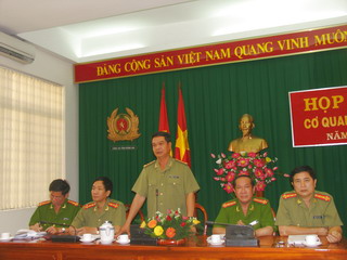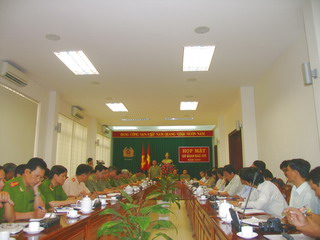 省公安局局长阮文庆上校与各领导同志在会议上