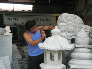 陈鸿发,鸿发美术石制作厂的老板称:以前在从事此生涯还“富裕”的时候,我有几个石匠,整年订单像雪花一样飞来。可是近来期间,完成的产品必须又快又美,因此要有先进工艺的干预,而此举要有巨额投资,像我们小型的生产单位是无法承担的。他还告知:我儿子从小时候已获得授艺,可是由于收入不太好而现在的他也不太热衷于家传的职业了。“在宝龙—石雕是代代流传的行业,可现在休业的艺人很多。至2010年若是新杏和化安的石头场被禁止开发,届时可不知情形如何?”陈老板透露。
