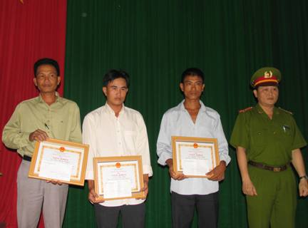 对阮黎明(光荣坊)、黎春金、阮庭领和陈光泉(三协坊)授予奖状及奖金。这则是及时且需要的事宜,有助鼓励群众积极参加追捕罪犯,为良好实现我市“全民保护祖国治安”活动作出贡献。