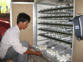 阮文求哥以村邑协助消饥扶贫的资金发展其孵蛋行业