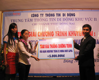 这次抽奖活动的幸运客户为边和市,第一豪奈坊的阮氏秋河。奖品包括现金相等于一部Honda Wave anpha摩托车的价值和银行卡5百万元。