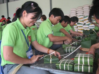 为了答应市场需求春节期间增高,我们厂家招聘很多临时工,主要是有需求赚钱的大学生及在当地的空闲劳动者。临时工获3-5天的包粽法教练,以能做出达到质量要求的方圆粽子。