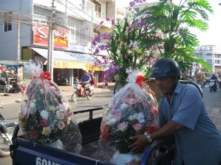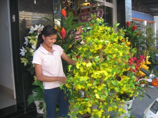 据潘庭逢路上的青翠布花店老板娘青翠姐,因大年来临大家都要见新,装置房屋让布花在终年热卖,加上越南人的习惯为年初盖房年底完成,就卖花回来装饰并迎接新家。