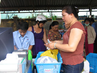 虽受大雨的天气条件不顺利但在永久县永安乡的这批售货,各企业的营业额逾3亿元,让他们暗喜。对于消费者而言,人民多少已接近得到有品质产品,优惠、售后服务各活动和尽快现代的买卖、付款方式,本来对市内民人是很熟悉但对农村消费者却完全陌生。该活动对整年作农务的农民是一个良机让他们购买给个人和家庭需要的商品。展泵县Cay Gao的一个家庭妇女陈氏蓉告知:“家庭也有经济条件,所以我们常常开汽车来边和市与胡志明市各超市购买东西。Co.op Mart的丰富多彩商品,优惠政策符合我们的爱好与需求所以成为我们信赖的地址。争取购买需要品除外,若有大打折活动,我还买回来经营。在地方售货,由近我家所以我买挺多。虽然商品种类不如在超市那么丰富,但也能答应我门家庭的需求。凭50万元小票,除了直接享受商品上的打折,还获超市赠送两个很美的碟子”。