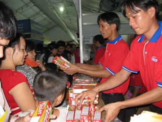 所属工业、食品、纺织品等领域的多200展位,越南商品对消费者立足了自己的优势。其中,D&F食品,Lothamilk奶品,同奈蜜蜂, Donafood,同奈缝纫,信义等威信与熟面的商标,表扬了同奈地区的能动和丰富地发展,在展览上是最多顾客停步参观之展位。