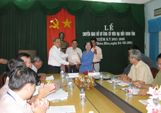省人民议会副主席、省选举委员会主席黄志胜向省越南祖国阵线委员会主席阮氏金莲提交卷宗
