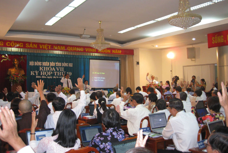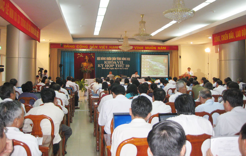 6月30日上午,在同奈省国家行政机关大楼,第七届第19次同奈省人民议会会议正式开幕。党中央委员、同奈省省委书记、省人民议会主席陈廷成先生;省人民议会副主席黄志胜;省人民议会常任委员阮文勇出席会议。除了以外,还有来自中央、地方各部门领导代表以及代表我省选举人的22人。