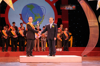 武黄开先生受同奈科技厅厅长委权,在颁奖典礼上接受奖章。