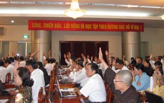 在各代表表决通过重要的决议之前,该会议倾听省人委会主席对2009年经济社会发展情况有关问题进行报告,并强调在下半年要集中解决的一些工作。他说,省人委会要严肃对一些经济目标还不达已提出的计划(今年上半年我省国内生产总值只达7.14%,为多年来最低的增长速度;许多社会的迫切问题尚未解决好;规划制定与管理工作仍存在问题;土地拆迁、补偿、重新安置工作不足、导致一些项目开展较慢;环境资源管理工作有好转,但未能满足 地方经济发展的需求;政治安宁、社会秩序安全情况在一些地方演变复杂等等。主要原因就是由于受世界经济衰退的影响;在一些地方和部门的检查工作未能深入开展下去;行政改革虽有好转但未达到要求;国家行政机关之间配合不紧密等等。