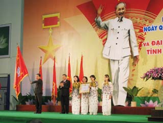 值此,大会亦对在5年期间爱国竞赛运动中做出优秀成绩的各集体和个人赠予由党和政府颁奖的各份高贵礼物。