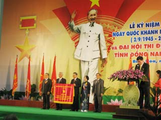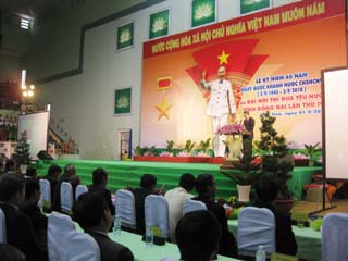 在纪念大会上,就越南民主共和国的诞生则出自1945年八月革命的巨大意义中给予致辞之后,省人委会主席武文一强调,党部及全省人民有权对经济、社会及文化各领域上所取得的胜利和成就而感骄傲。至于爱国竞赛运动,武主席认为,过去5年来,虽然由于全国及我省情况呈现巨大变动而造成许多困难,可是在我省党部的领导之下,加上全体人民、干部、战士、各阶层劳动人民、各机关、单位、地方政府的团结精神,我省内各政治社会团体组织和各家企业均已体现出稳固的政治本领,主动创新的精神,敢想敢做,尽力做出贡献,进而推动了各爱国竞赛运动,并展开许多切实的革命行动。由此,已发现了许多先进典范的集体和个人。武主席要求,在同奈省第四届爱国竞赛大会上所获尊荣的那些典范之花儿将持续发挥其所取得的成绩,为其地方、单位做出更多贡献。