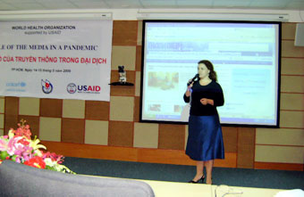 世界卫生组织传媒干部Shelaye Boothey女士介绍有关甲型H1N1流感的问题。