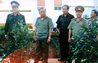 | 中将阮成恭对锦美县国防军事工作进行检查。 |