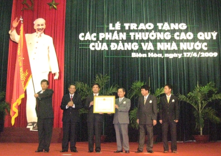 同奈省人委会主席向建设厅集体授予一等劳动勋章。 |