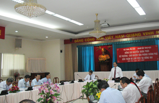 在会谈中讲话时,政府办公室副主任阮春福对同奈省对保持相对稳定及快速增长(即保持国内生产总值增长于15%以上)的努力给予高度评价,特别,该省总在企业的身边,帮助企业解决困难,为劳动者解决就业等。这证明政府的经济刺激计划已发挥作用。然而,他也特别关心到地方的社会稳定政策。并表示地方要集中对困难问题进行分析,以便找到在现在经济情况的走向;关心到货币政策,商业促进工作等;特别建议要推进行政改革工作。通知对该省领导者的意见表示一致及表示会向政府总理报告。
